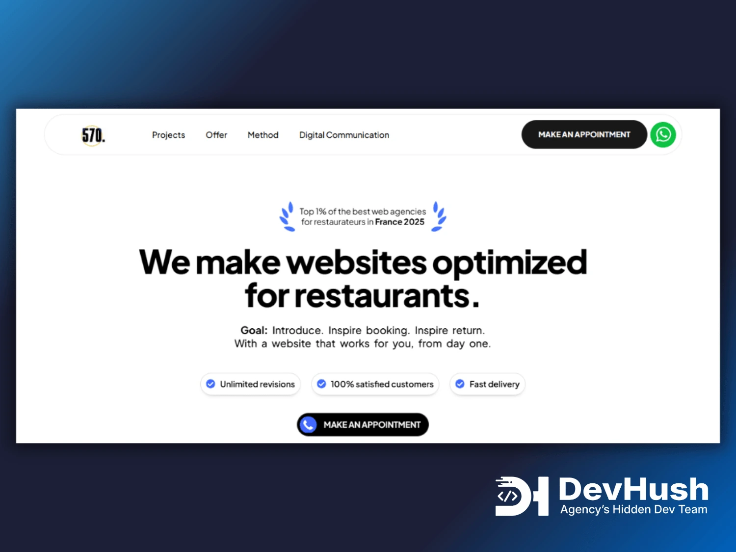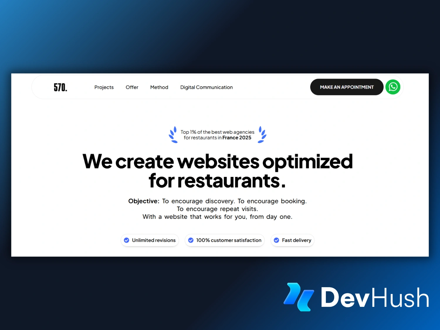 570.agency is one of the top web agencies in France for restaurants. They build websites that help restaurants get noticed, increase bookings, and bring customers back again.